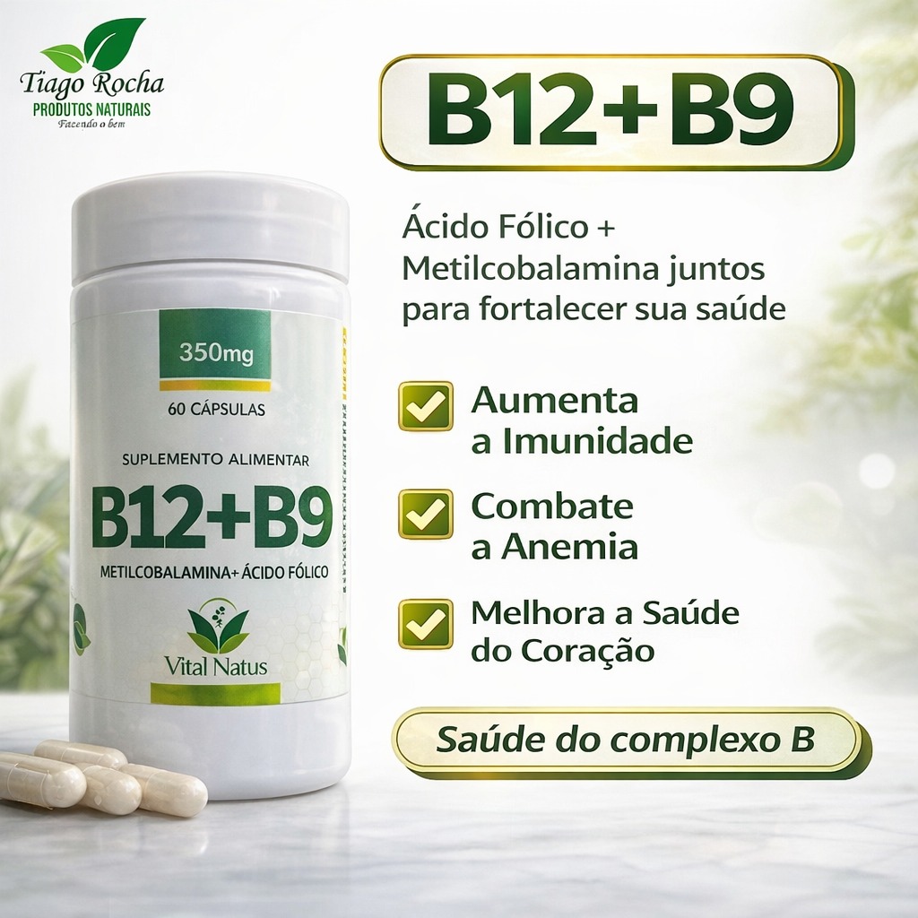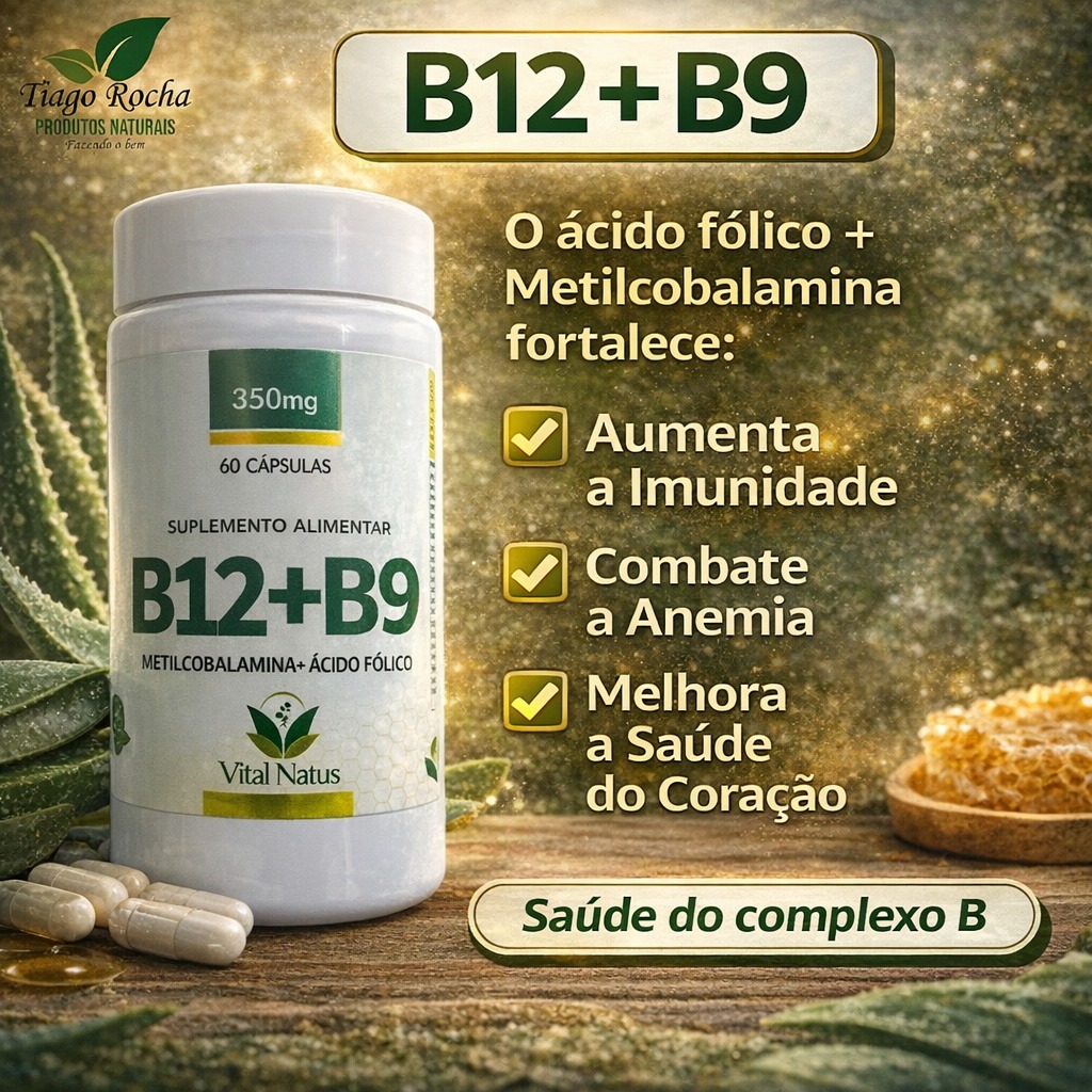 O Vitamina B9 + Metilcobalamina B12 é um composto natural que auxilia no fortalecimento da imunidade, no tratamento da anemia e no bom desenvolvimento do feto, ajuda também no tratamento da distrofia muscular, na prevenção de doenças neurológicas, e insônia. Auxilia na manutenção da saúde cardiovascular e facilita o processamento de gorduras pelo fígado.