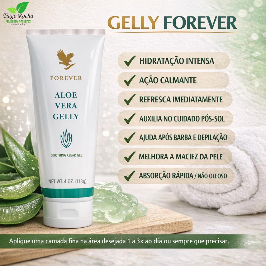 Especialmente preparado para aplicação tópica para hidratar, suavizar e condicionar a pele. Aloe Vera Gelly é um gel translucente e contém hidratantes e umectantes. Rapidamente absorvido pela pele, suaviza sem deixar manchas nas roupas.