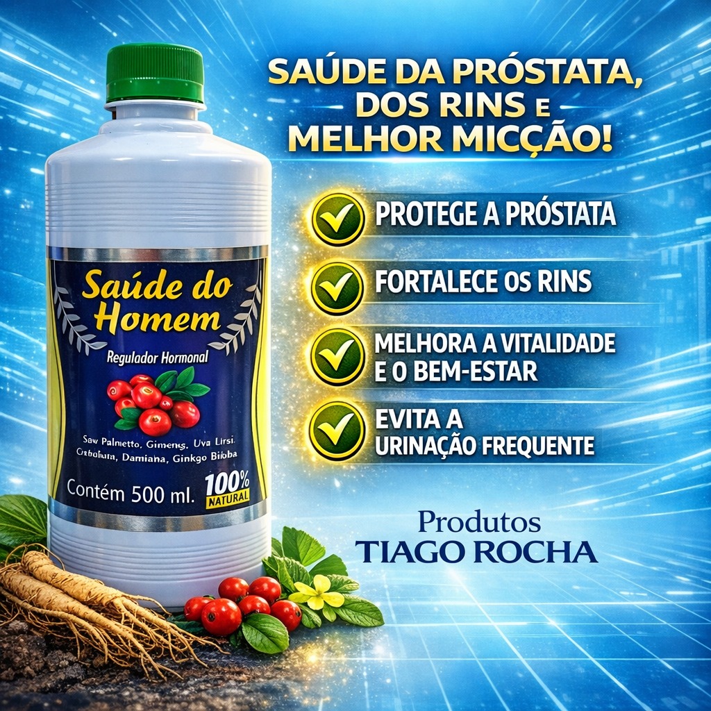 O Composto Líquido Saúde do Homem (Próstata e Bexiga) é uma fórmula natural pensada para apoio ao bem-estar urinário e à saúde masculina, combinando extratos tradicionalmente utilizados para conforto da próstata, fluxo urinário e equilíbrio do trato urinário.