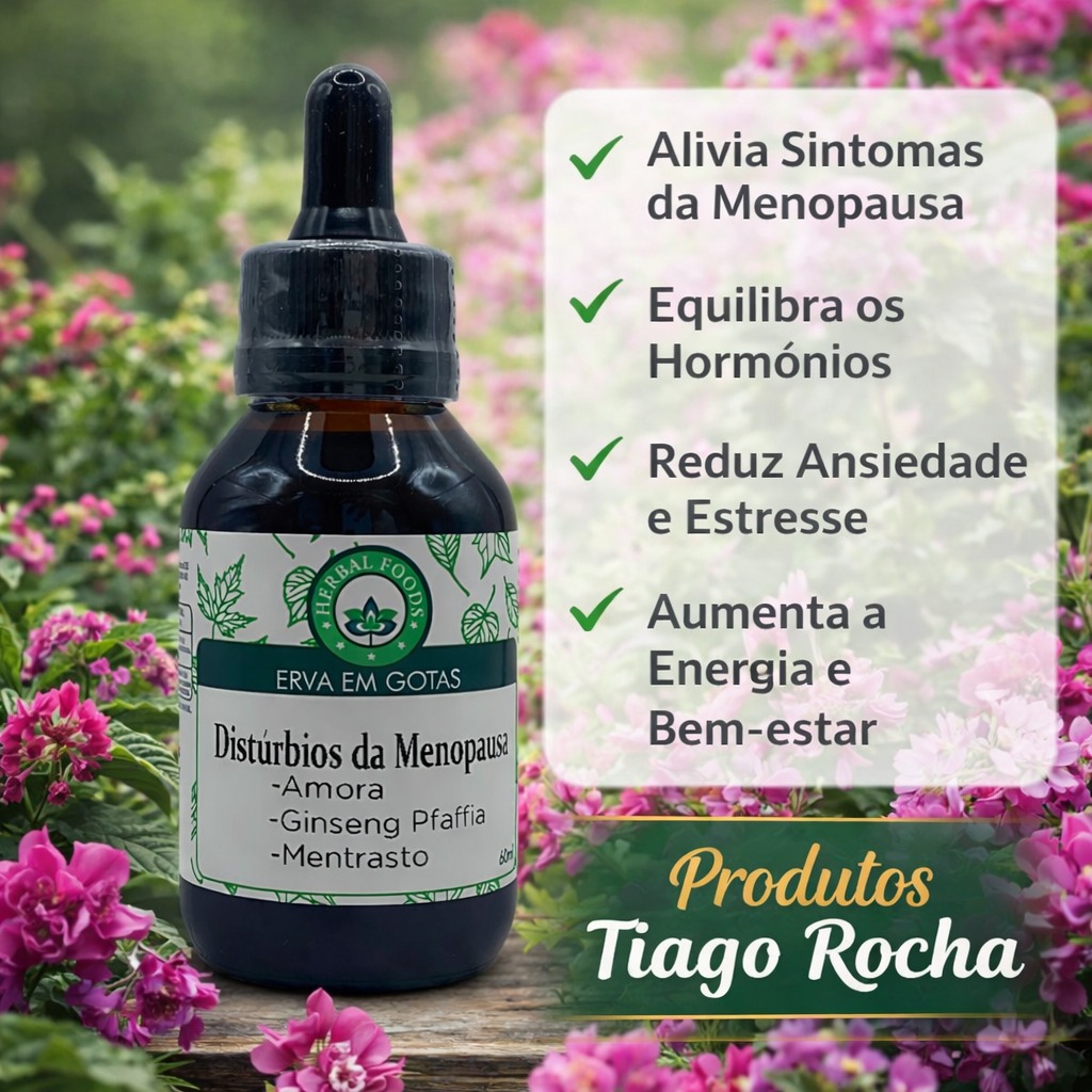 - Auxílio no equilíbrio hormonal e bem-estar feminino na menopausa.