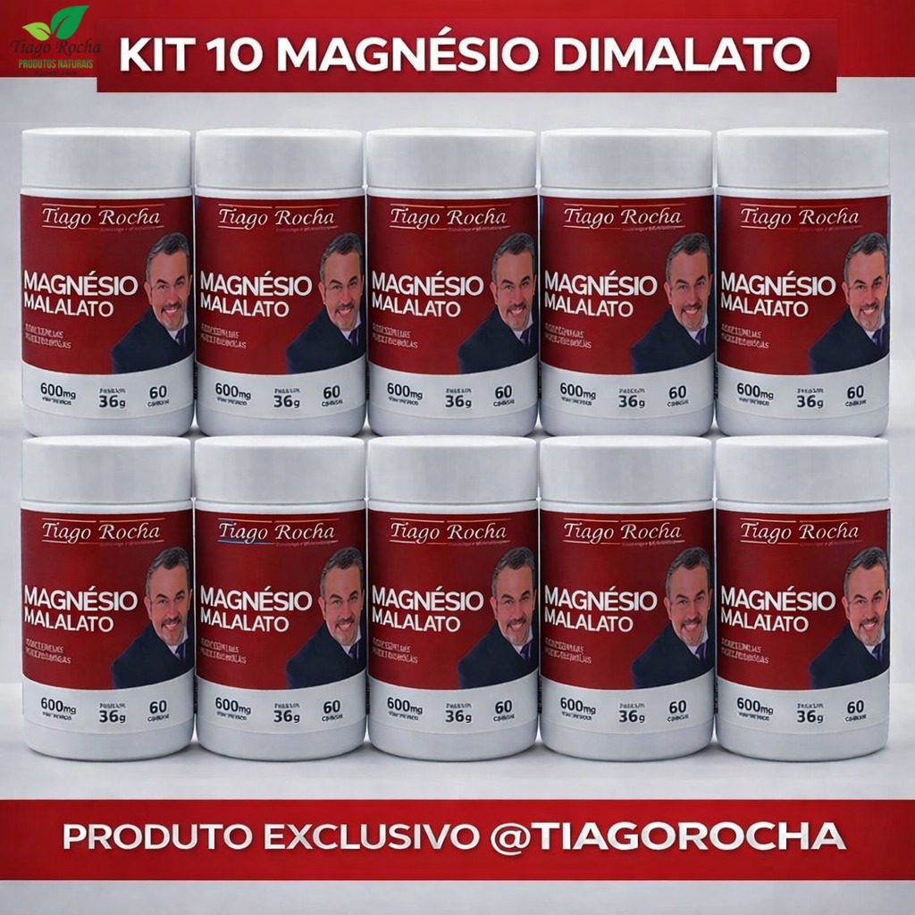 Kit10 Magnésio Dimalato Tiago Rocha 600 cápsulas