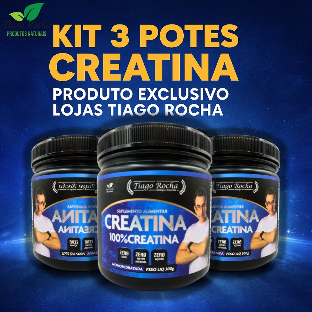 kit3 potes Creatina Tiago Rocha 300g cada pote