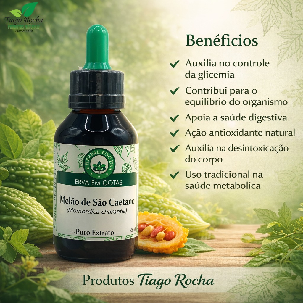 Melão de São Caetano Puro Extrato 60ml Diabetes (Momordica charantia) é uma planta medicinal amplamente encontrada na Ásia, África Ocidental e na América do Norte.
