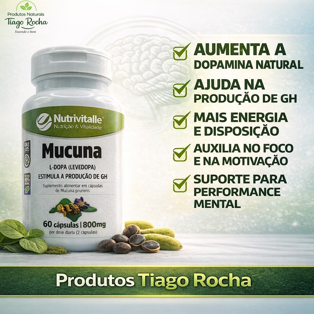 Mucuna é uma das maiores fontes naturais de um aminoácido chamado L-Dopa (Levodopa), um precursor essencial para o neurotransmissor dopamina.